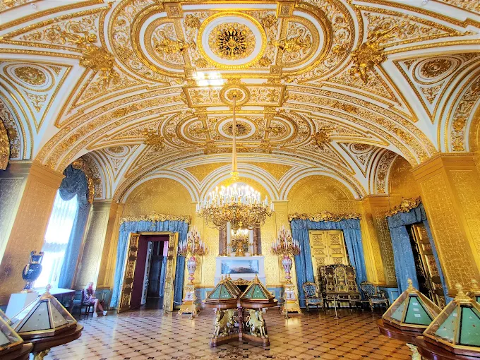 The museum is particularly renowned for its collection of Western European art. Visitors can encounter paintings by Leonardo da Vinci, Rembrandt, Raphael, and Titian, alongside major works by later artists such as Van Gogh, Monet, and Matisse. These masterpieces appear within lavish palace interiors filled with gilded moldings, marble staircases, and vast ceremonial halls reminding visitors that the museum itself was once a center of imperial power.