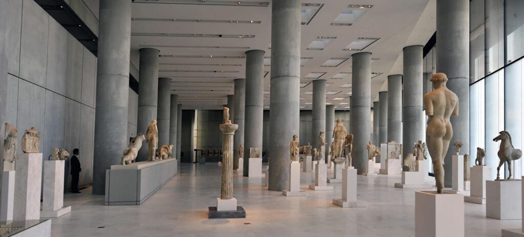The museum was conceived not only as a place to preserve artifacts but also as a space where visitors could better understand the context in which these works were originally created. Large glass walls allow natural light to fill the galleries, while offering direct views of the Parthenon and other ancient structures on the Acropolis hill. This visual connection helps visitors imagine how the sculptures once appeared in their original architectural setting.