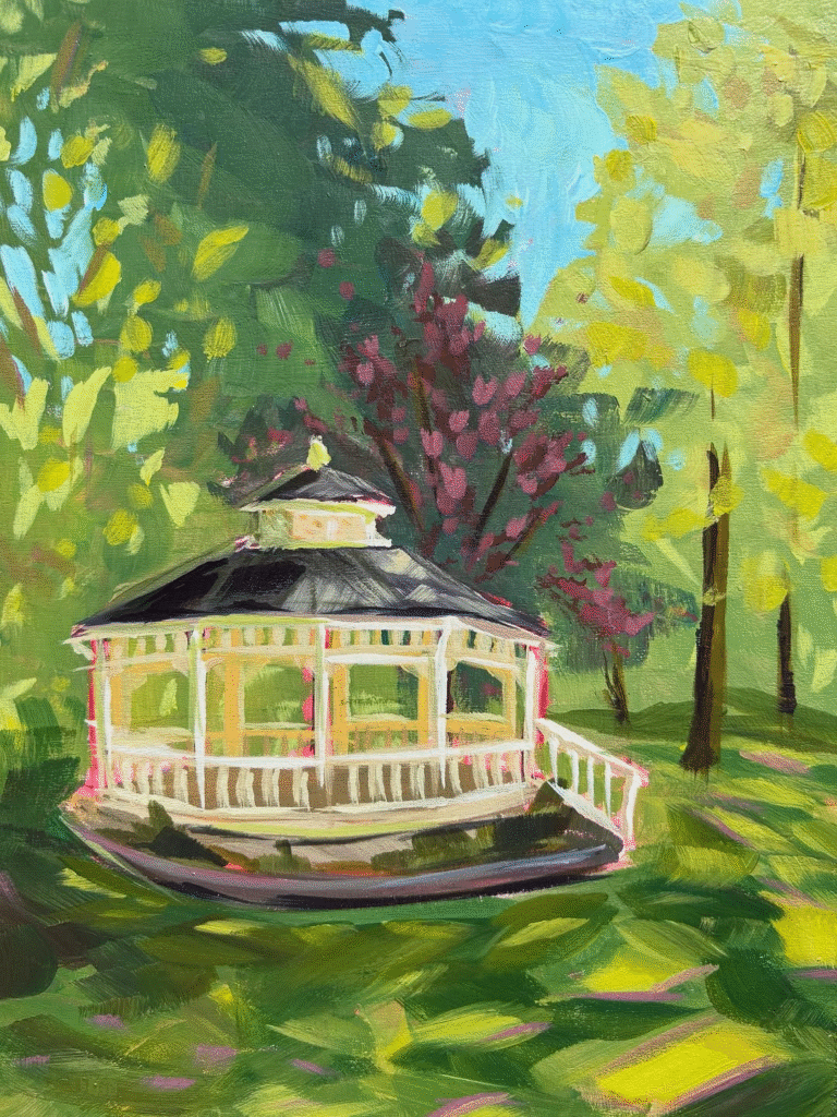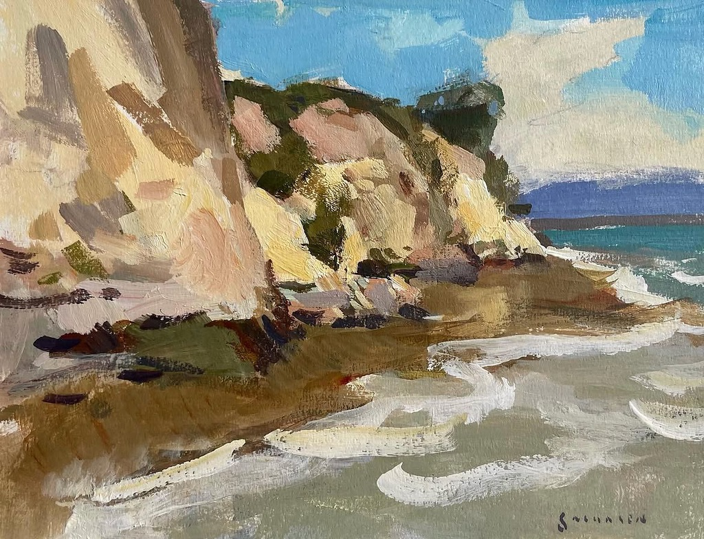 What sets Eric apart is his commitment to painting atmosphere over detail. Rather than focusing on photographic accuracy, he builds paintings that invite us to feel the air, sense the temperature, and notice the stillness or movement in a scene. Each piece becomes a dialogue between artist and place planned enough to hold together structurally, but free enough to allow spontaneity and surprise. While landscape is his most frequent subject, Eric’s work is ultimately about presence. Through his use of acrylics and his outdoor practice, he captures those fleeting instants when the world feels suspended, and invites viewers to pause, breathe, and step into the quiet poetry of the land.