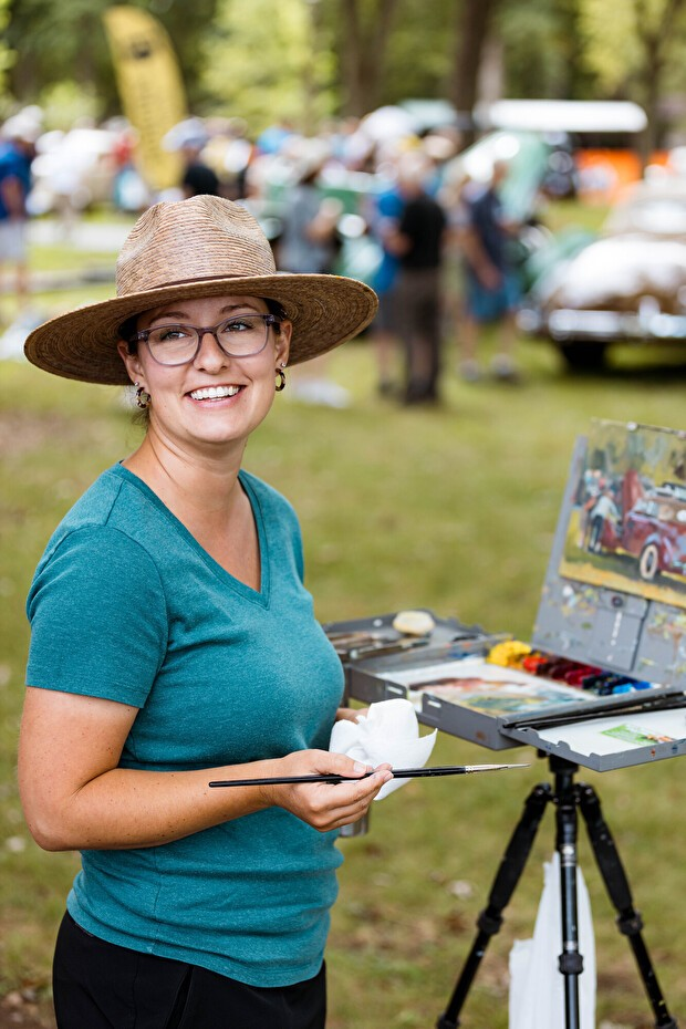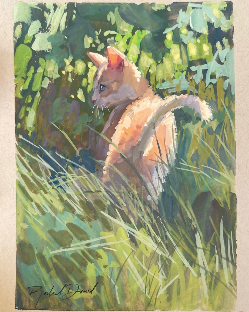 Rachel Dowd lives and paints in Northern Indiana, and through her oil and gouache work she captures the quiet beauty of everyday moments, the way light hits a garden, the soft glow of early morning, the calm rhythm of nature and home. Her gouache and oil paintings don’t chase grandiosity; they seek truth in light, atmosphere, and emotion inviting us to see the ordinary with reverence, to breathe in the world’s subtle pulses, and to pause in moments often overlooked. In her hands, a quick sketch under a changing sky becomes a quiet hymn to nature’s transience; a small 5×7″ gouache evokes a moment before sunrise, the hush after rain, the quiet breath between seasons. Her work starts with feeling. She doesn’t always aim for perfection; she seeks authenticity. In her own words, she explores “the beauty of God’s Creation through my brushstrokes.” That intention shows. In her paintings, light becomes sacred: soft washes of color catch on leaves, water reflects sky in gentle tones, shadows deepen without harshness, and earth whether a field, a path, a tree-line feels alive under subtle layers of pigment.