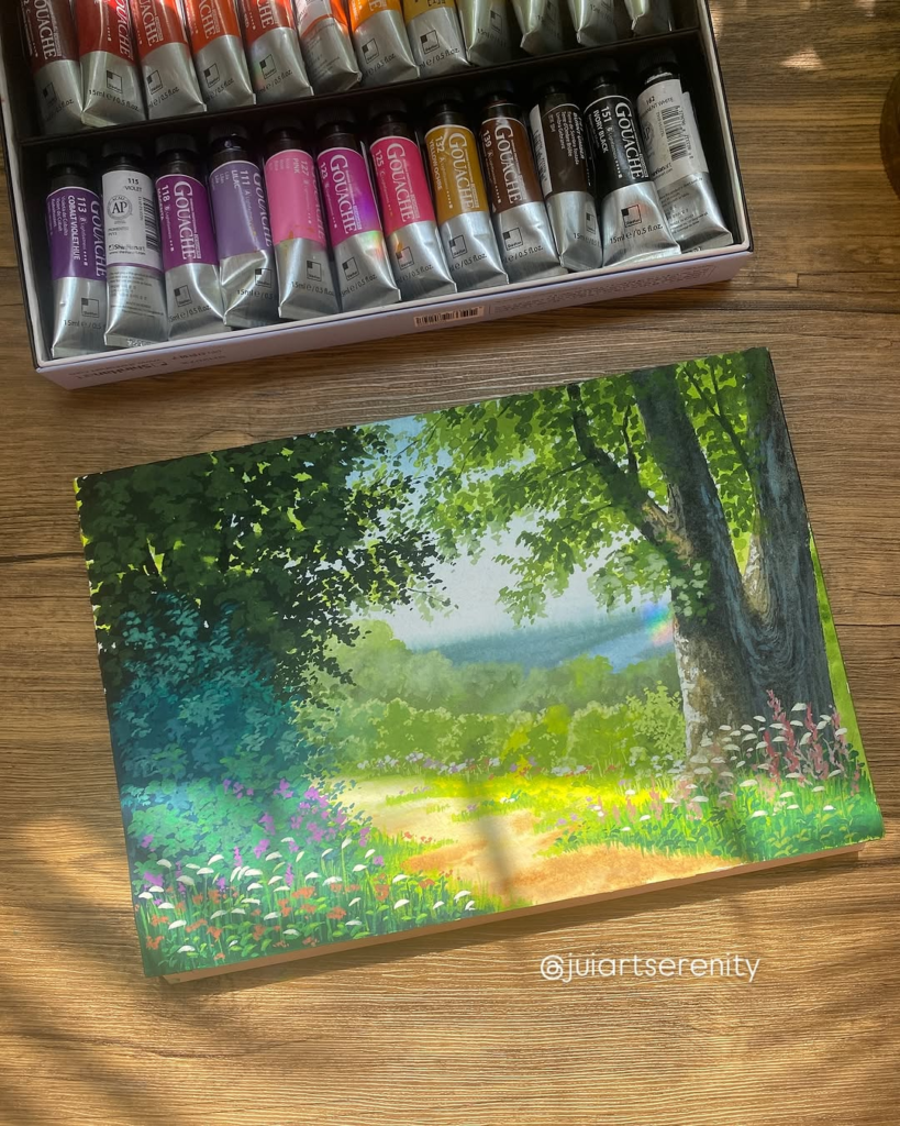 Gouache, with its matte glow, delicate layering, and quiet flexibility, is a medium that rewards patience and presence. In the hands of the artists we’ve explored, it becomes something even more: a way of noticing, of remembering, of returning to ourselves through gentle acts of creation. Their work reminds us that art doesn’t always live in grand gestures or sweeping statements. Sometimes it lives in the hush of a landscape, the curve of a blossom, the warmth of muted tones layered with care. Sometimes it’s in the way light settles on a page or in the tenderness of a moment captured before it slips away. Gouache, with its honest matte finish and humble presence, becomes a vessel for these small truths. It teaches us that softness can hold depth, that subtlety can carry meaning, that quiet can be profoundly expressive.