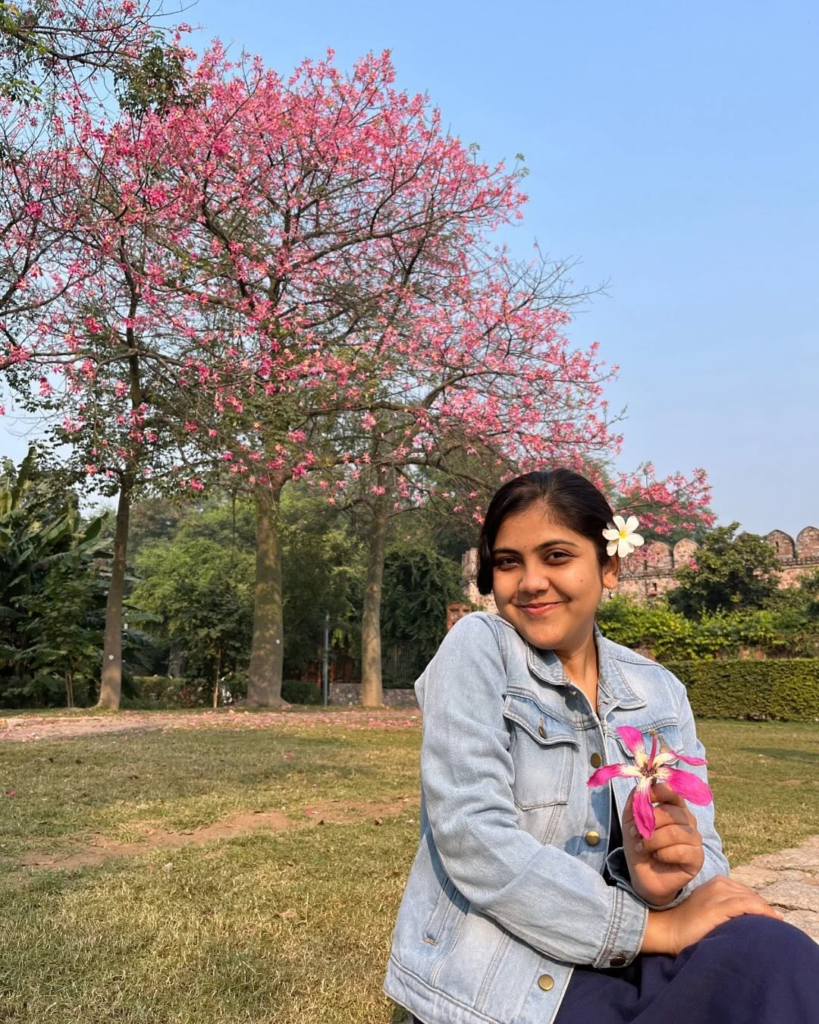 Growing up between the lands of Bhuj and Rajkot, and later Vadodara, Vidhi carries with her a quiet childhood intimacy with India’s varied colors, textures, and rhythms. Those early landscapes, dry winds humming across open fields, bursts of bright florals against sun-baked walls, monsoon shadows slipping across courtyards, shaped not just her eye, but her way of sensing the world. From those early experiences emerged a sensibility that sees beauty not only in grand landscapes, but in the everyday a loose petal drifting in the light, a blossom weighed by rain, a flicker of shade beneath leaves. Vidhi has always been drawn to the soft in-between moments, the ones most of us rush past without noticing. For her, they’re not small. They’re essential subtle reminders of how alive and layered the world truly is.