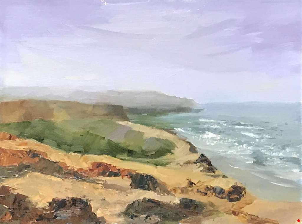 Karen Crowell is a California-based oil painter whose work captures the beauty of the place with both tenderness and vibrancy. Trained at the ArtCenter College of Design in Los Angeles, where she studied under the influential painter Lorser Feitelson, she first pursued a career in graphic design before returning fully to painting in 2008. That return marked a turning point, allowing her to embrace oils as the medium through which she could most freely explore memory, light, and landscape. Her canvases are deeply influenced by the California coast where she grew up, the rolling hills, rocky shores, and shifting skies of San Diego and Santa Barbara that continue to ground her practice. Crowell’s approach is intuitive, shaped as much by feeling as by form. Whether painting en plein air or in her studio, she resists rigid rules, letting spontaneity guide her brushwork. This freedom is visible in her landscapes and seascapes, which often carry a sense of immediacy, as if the air and atmosphere themselves are caught on the canvas.