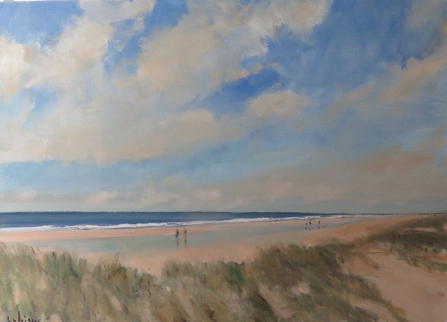 In works like his wide seascapes, the horizon becomes both anchor and mystery, a line that separates and unites. In more intimate scenes, children at play, walkers along the beach he captures not simply activity, but the quiet poetry of human presence within vast natural forces. Each canvas carries that tension between smallness and grandeur, immediacy and permanence. Recognition has followed this devotion. In 2013, Ludvigsen won the Oldie British Art Prize, affirming his place among Britain’s most compelling contemporary painters. His work has since been collected widely and shown across the UK and beyond, each exhibition inviting viewers to stand still for a moment inside the rhythm of sea and sky. What makes Ludvigsen’s paintings unforgettable is not just their technical mastery but their honesty. The brushwork is direct, the compositions unpretentious, the light always true to the moment. They invite us to pause to feel the wind, to follow the horizon, to remember that beauty is often found in what passes quickly. This openness, together with his enduring love for the places he paints, makes Malcolm Ludvigsen not simply a painter of landscapes, but a painter of lived experience.