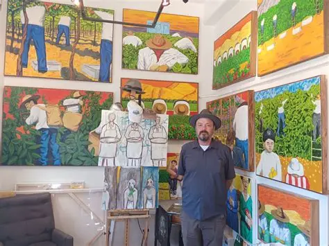 Weston Riffle is a California-based oil painter whose work reflects the rhythms, memories, and quiet truths of the landscapes he grew up in. Born in La Mesa in 1970 and raised in the rural farming community of Ramona, Riffle carries the imprint of California’s agricultural and working-class heritage into his canvases. Though he studied at San Diego State University and San Jose State, he describes himself as largely self-taught, preferring instinct and lived experience over rigid technique. His paintings often begin with layers of complexity before distilling into a clarity that feels both raw and poetic, a process he likens to stripping back noise until only truth remains. Riffle’s subject matter is steeped in the life of rural California: farm workers bent against the sun, fishermen at work, fields and towns etched with both beauty and fatigue.