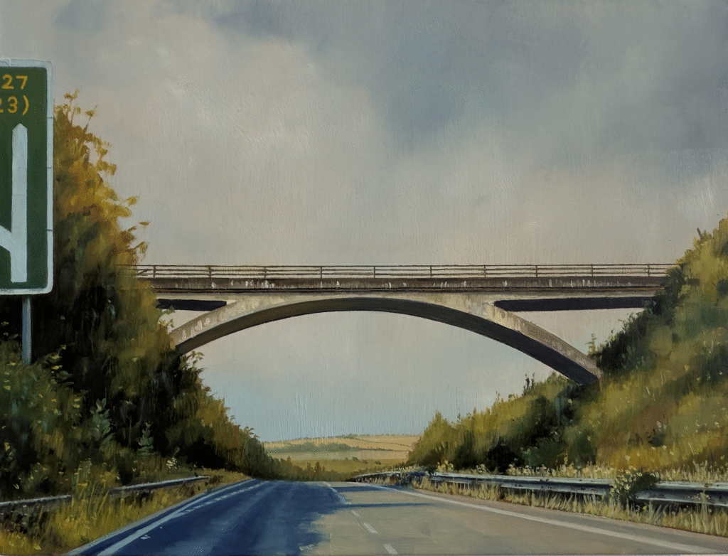 Stripped of cars and people, the bridges in her paintings become spaces for projection metaphors for endurance, absence, and the liminal places between the people and memories we hold closest. Through oils, she draws out the poetry in these overlooked landmarks, reminding us how journeys both physical and emotional shape the way we see. Orpin’s work has been recognised widely, with pieces now held in Manchester Art Gallery’s Lowry and Valette Room. She has exhibited across the UK and internationally, including solo shows in Manchester, London, and Seoul, and a presentation at Art Busan in South Korea. Her motorway paintings have featured in The Guardian, Observer, and on BBC Radio 6Music, resonating far beyond their subject matter. As co-founder of Rogue Women and the creator of Small Space, she continues to champion new ways of sharing art and amplifying underrepresented voices. With her ability to capture profound emotion through a medium steeped in tradition, Jen Orpin has established herself as one of the most distinctive and finest oil painters working today.