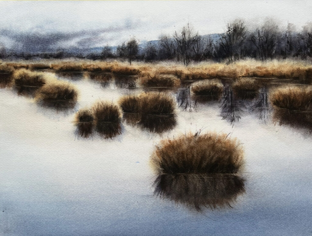 Using watercolour to tell you about my love for the land, the light, and the stillness.”