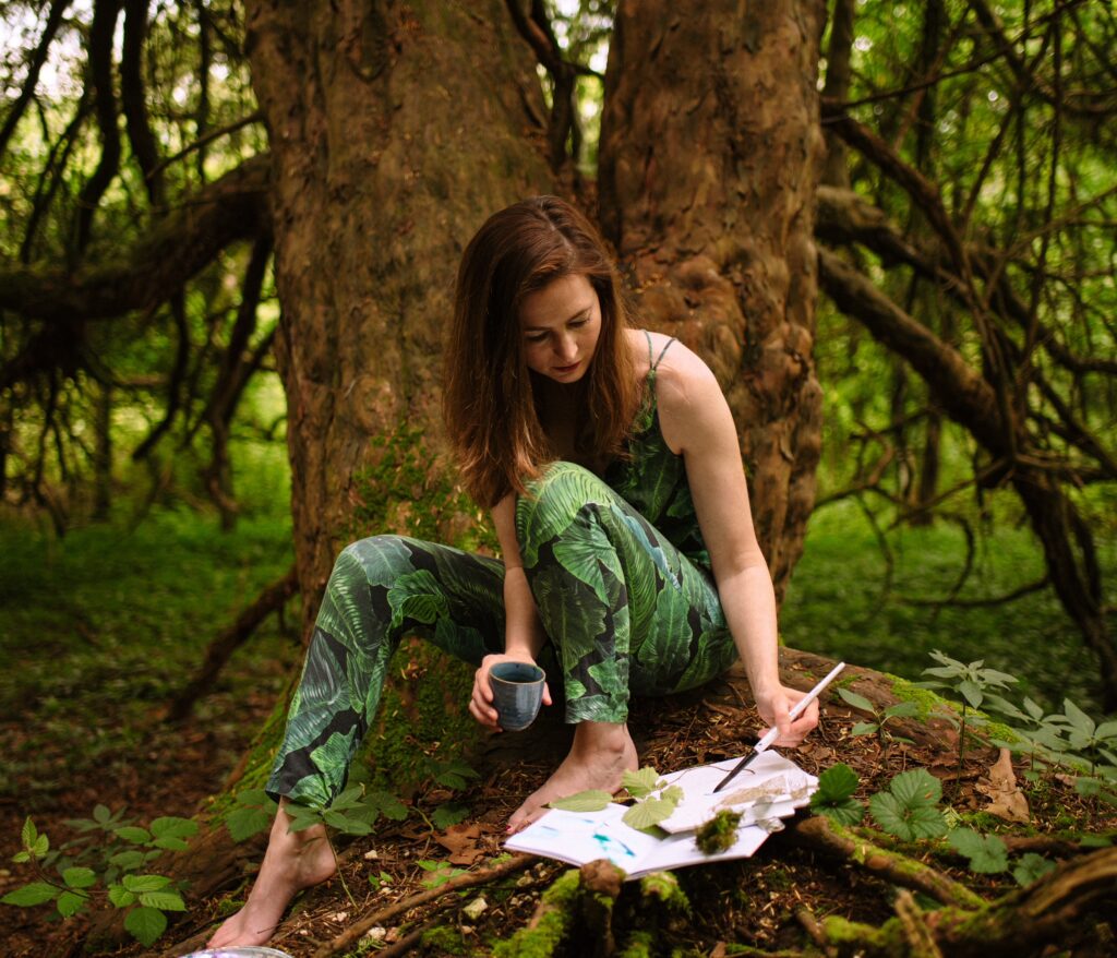 Her process is one of both attention and surrender. She observes nature, her walks, the changing light, the textures of leaves and bark and then she lets watercolor respond. The flow of color, the drip of pigment, the soft edges where water meets paper these are not accidents but part of her artistic language. What she produces is more than decoration. It’s a visual reflection of how she sees the world: alive, interconnected, and always revealing something new if we look closely. In Adeline-Julie’s hands, watercolour becomes both gentle and vivid. It speaks of seasons, of growth, of subtle transformations. Her patterns, prints, and original paintings invite us to slow down, to notice colour and shape in a new way, to remember that nature’s small wonders matter. Her art reminds us that creativity isn’t always about grand gestures; it can also be about quiet attentiveness, about making space for light and shadow, about honouring the materials and letting them lead a little. Through her work, we are encouraged not just to look but to feel.