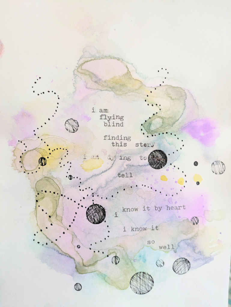 With so little on the page, what remains becomes essential: the feeling itself. Her pieces often look like stillness, but they hold movement beneath the surface, a reminder that living with feeling is its own kind of courage. Though she studied English and drama and spent many years teaching high school literature and theatre, Melissa’s shift into art was sparked by experience, not theory. After losing her father in 2020, painting and writing together became a way to stay connected to memory while learning to keep going. That blending of mediums fragile pigment beside steady words has become the heart of her work. Her art stays with people. Her marks are light, her poems short, yet their honesty lands with weight. They make us feel seen. They remind us that the small, everyday moments carry the full story of who we are. In Melissa’s hands, watercolor becomes a place to rest, to remember what we’ve lived through, and to trust that we can hold both the tenderness and the strength that come with being human.