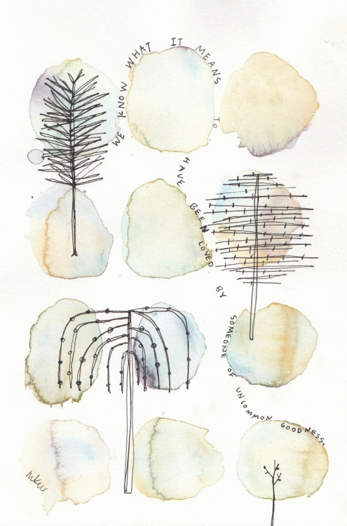 Melissa Kemper Westbrook makes art that feels like taking a deep breath. Her watercolors and poetry give shape to feelings we often carry quietly the mix of loss and love, the exhaustion and the joy, the ache and the gratitude that live side by side. An American artist and poet based in East Atlanta, she creates from a small porch studio where the sound of traffic and the laughter of her four young sons become part of the rhythm around her. What began as simple play with her children’s watercolor set has grown into a thoughtful practice that joins words and color in a way that feels both personal and universal. Her work is grounded in ordinary life: familiar trees, small gestures, moments that might go unnoticed. Melissa strips away background and noise, allowing soft washes of watercolor to hold attention and emotion without distraction. Into these gentle spaces she threads short lines of poetry direct, spare, and honest.