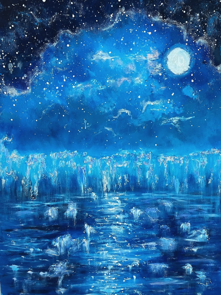 Their canvases hold the sound of distant tides, the whisper of wind, and the shimmer of reflection. From gentle coastlines to stormy depths, they trace the stories that water tells of longing, surrender, and renewal. These artists turn the infinite expanse of the ocean into something human: a space where we can see ourselves drift, anchor, and begin again.