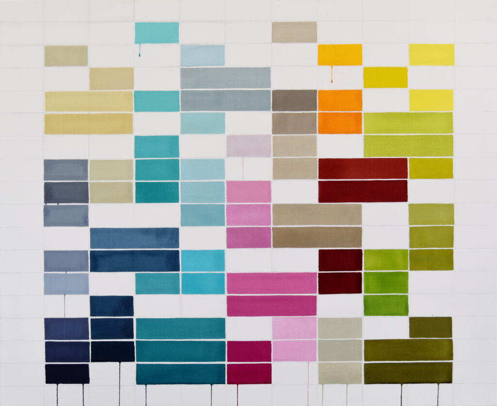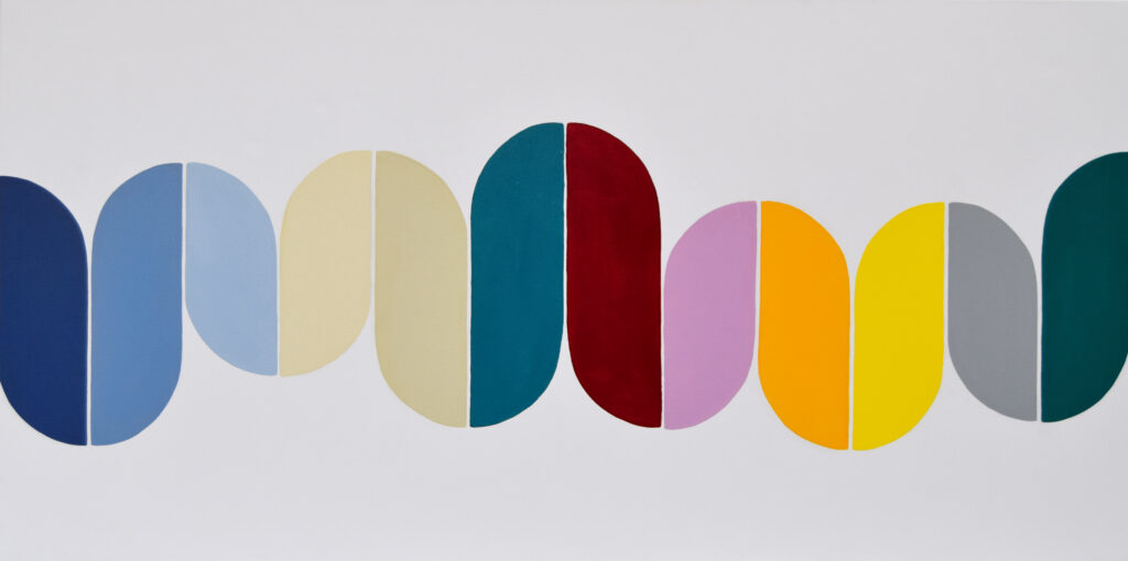 Color—each in its own unique way—has a magical pull on me. I can’t choose a favorite, as every shade has its own character and beauty. I love observing color both in artificial settings, like store displays or shelf arrangements, as well as discovering it in nature. For example, I never wear sunglasses outdoors because I want to experience colors without any filter. In my main works, I typically use more than 20 colors, always keeping a balance between warm and cool tones. Over the years, I’ve also created smaller series that are monochrome or more minimal in their use of color. The challenge in those pieces is to achieve presence and harmony with limited color—and still captivate the viewer.