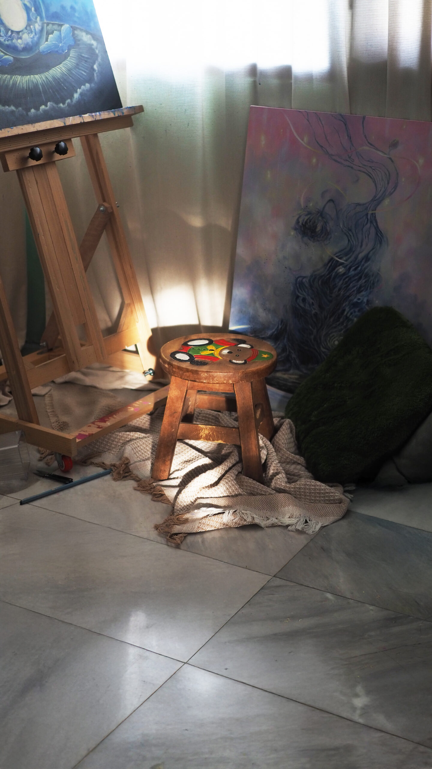 The painting zone is my fav! It’s right beside the curtain where the light gently pours in. It’s quiet, calm, and feels like a small world where time slows down, allowing me to focus on the art piece in front of me.