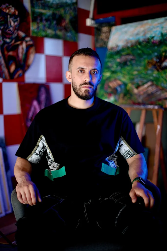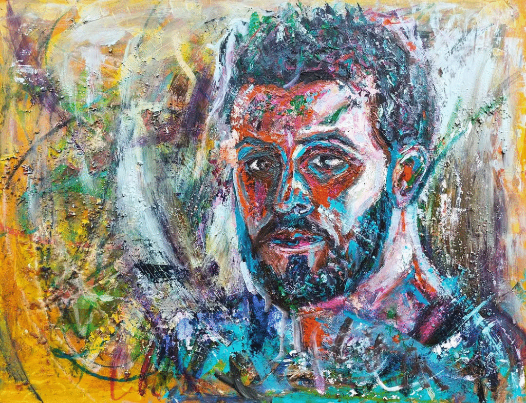 His technique speaks of a story unfolding in layers. Using acrylic and oil over wood panels, often enhanced with photography and varnish, Jad builds texture and depth that invite psychological discovery. Influenced by artists like Francis Bacon and Lucien Freud, his bold brushstrokes and vibrant palette give his work an emotional resonance that is both visceral and introspective. As Jad describes his process, he seeks to capture more than appearance he aims to connect. His participation in the Saatchi Gallery’s Konooz Art Auction in London marked a milestone; his contemporary portraits now speak to audiences around the world. For Jad Zeitouni, painting is a form of exploration, a way to make visible the unspoken, the emotional, the layered. Through texture, gesture, and depth, he invites us not just to look, but to feel the stories beneath the surface.