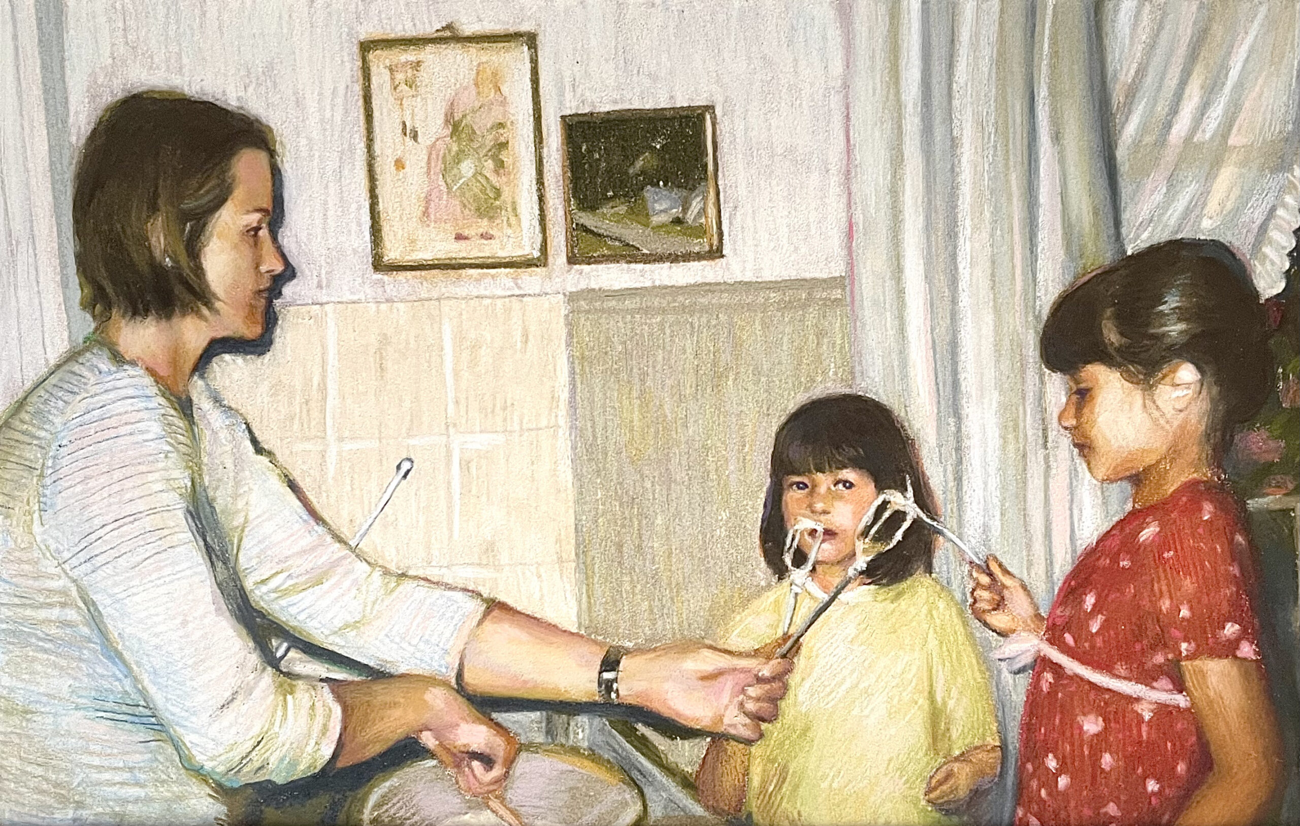 Marlene Low, Backe Backe Kuchen, 2023, 30x40xm, Pastel crayon on Pastelmat paper