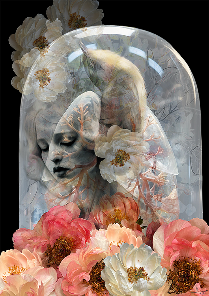 Lize Krüger is a UK-based digital artist whose work explores memory, ethical witnessing, and the body as a site of endurance. Working with layered collage, archival fragments, and quiet symbolism, she moves between the personal and the political with restraint. Her practice addresses grief, injustice, and resilience without spectacle, foregrounding dignity, attentiveness, and care. Artist Statement My work is driven by attention—how we look, what we carry, and what persists when certainty falls away. I work primarily with digital collage, layering photography, texture, and archival fragments to create images that feel both intimate and unsettled. The process mirrors memory itself: fragmented, repetitive, and resistant to clean narratives. Rather than offering resolution, I’m interested in presence. Many of my works sit in the space between fragility and endurance, where beauty and devastation coexist without cancelling each other out. Lace, florals, and formal elegance often appear alongside rupture and loss not to soften them, but to complicate how suffering is seen and consumed. Concepts such as microchimerism the idea of lasting physical residue inform my thinking structurally rather than illustratively. They shape how images inhabit one another, suggesting persistence without visibility. Ethical restraint is central to my practice, particularly when engaging with experiences beyond my own. I aim to bear witness without appropriation, allowing space for dignity, ambiguity, and silence. Ultimately, my work asks viewers to slow down and stay present to hold complexity without demand for closure.