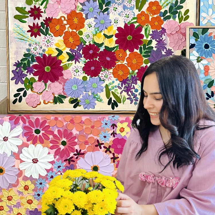 She combines crisp outlines with flowing washes of colour, creating a balance between structure and spontaneity as if her paintings are alive, still unfolding before your eyes. Her process is deeply intuitive. Some days it begins with a single colour that sets the mood, other days with the memory of a flower she saw in bloom or a quiet walk through a garden. Shohreen layers texture and pigment with care, letting some areas remain bold and striking while others dissolve gently into the background. The result is work that feels both grounded and full of movement, as though each petal might sway if you looked at it long enough. Every piece she creates, whether a one-of-a-kind original, a limited-edition print, or a commission designed just for you is made to transform a space into something softer, brighter, and more reflective of the beauty outside our windows. Shohreen’s art is an invitation to pause, breathe, and bring nature’s calm into your home. If you love art that feels like a fresh bouquet waiting for you every day, her work is something you can’t miss.
