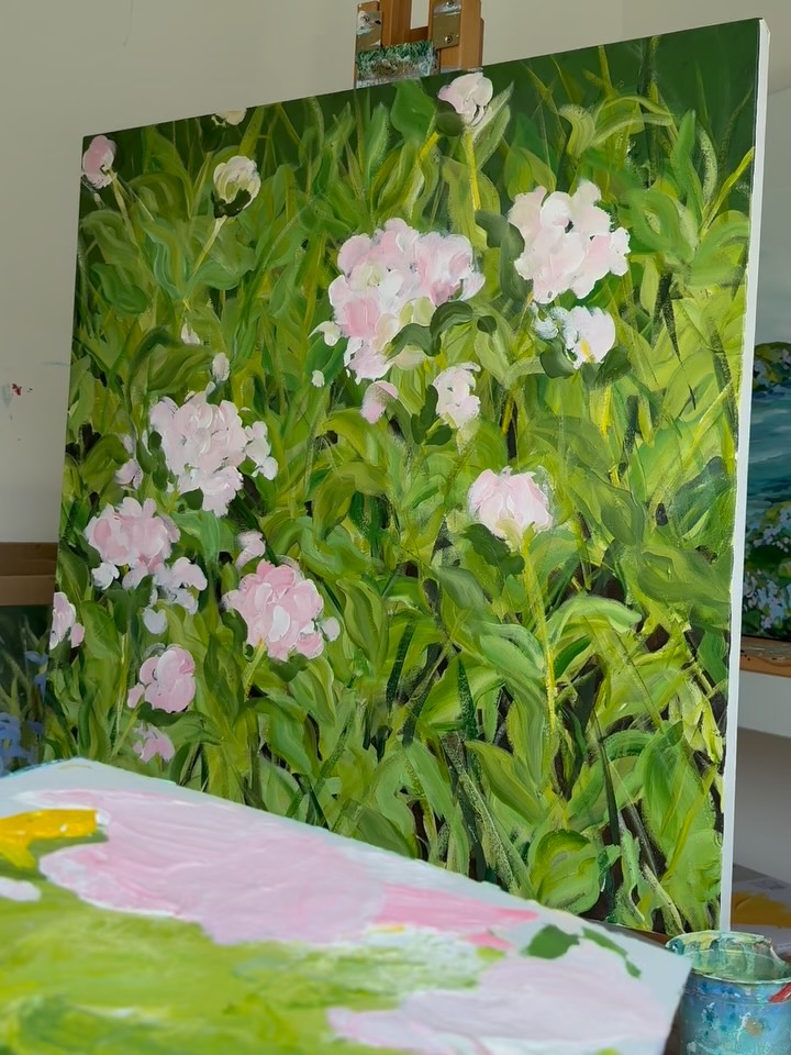 Her journey here wasn’t straightforward. Catriona studied art and design in Falmouth, later earning a degree in Graphic Design split between Edinburgh and Boston. Travel shaped her eye as much as study time in France and Australia left lasting imprints of light, colour, and atmosphere. For years she worked in management consulting, a career far removed from the easel, before deciding to return fully to painting. In 2024, she left the corporate world to focus entirely on her art, a leap that has defined her path ever since. Her paintings have appeared in House & Garden and British Vogue, and one of her originals was recently purchased for a Netflix production in the USA. Exhibitions, solo shows, and commissions continue to widen her audience, but what stays constant is the heart of her practice: flowers and the sea, painted with life. Catriona’s floral art is never just decorative. It is movement, energy, and atmosphere blooms that feel as if they could shift with the light, petals that almost breathe. Through her work, she reminds us that flowers are not still objects to be observed, but living presences that carry joy, colour, and the rhythm of nature itself.
