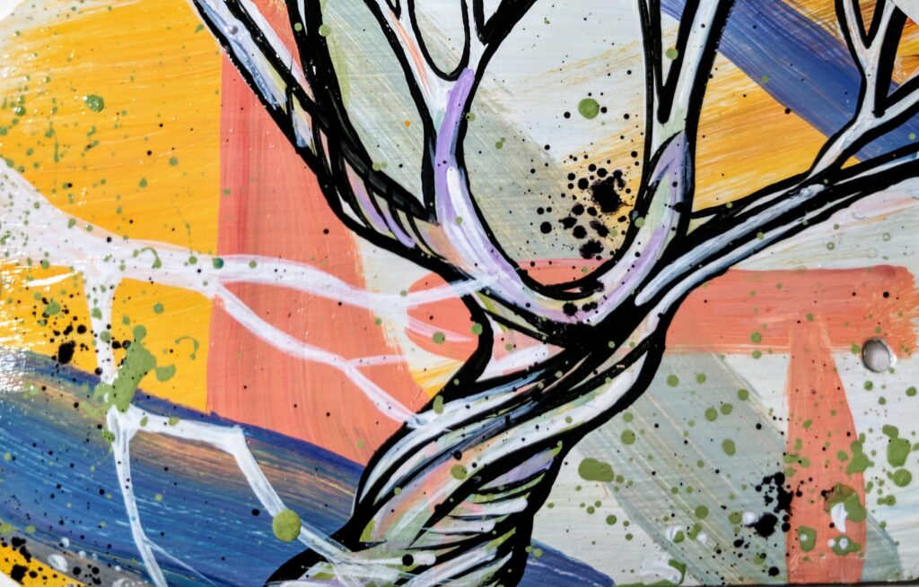 When I begin a new painting, color usually leads the way. I’m drawn to a palette that feels right for the mood or energy I want to explore, and that choice starts to shape the work. From there, I build textures and layers, letting the surface respond to the space and the marks I make. I love how layering adds depth and movement, but throughout the process, I’m always thinking about the meaning of the piece—it has to shine through, no matter how complex the surface becomes. Color, texture, and form work together to support both the energy and the message of the painting.