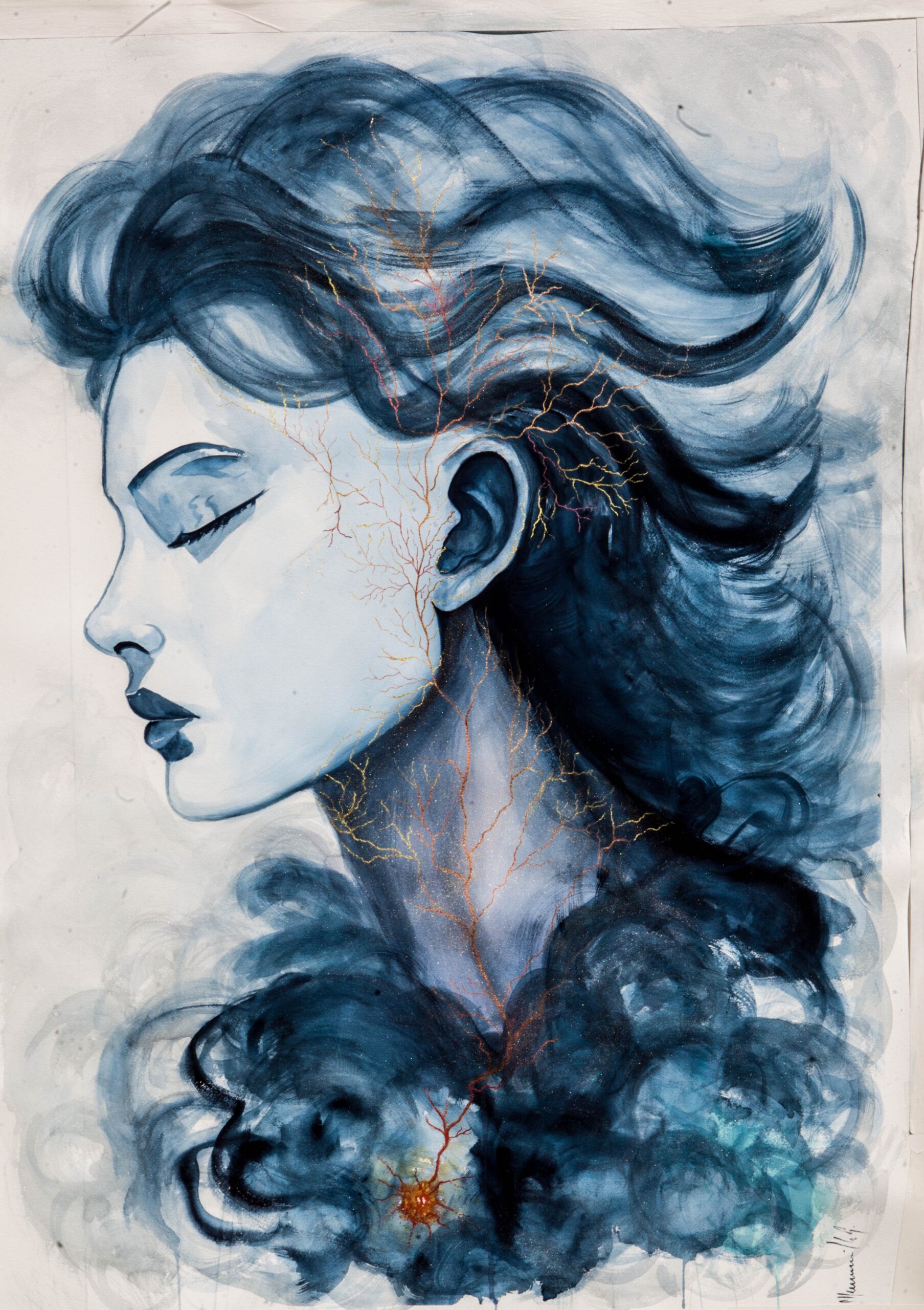 5. Your work often connects watercolour with ideas from neuropsychology. How do those two fields meet in your creative process?