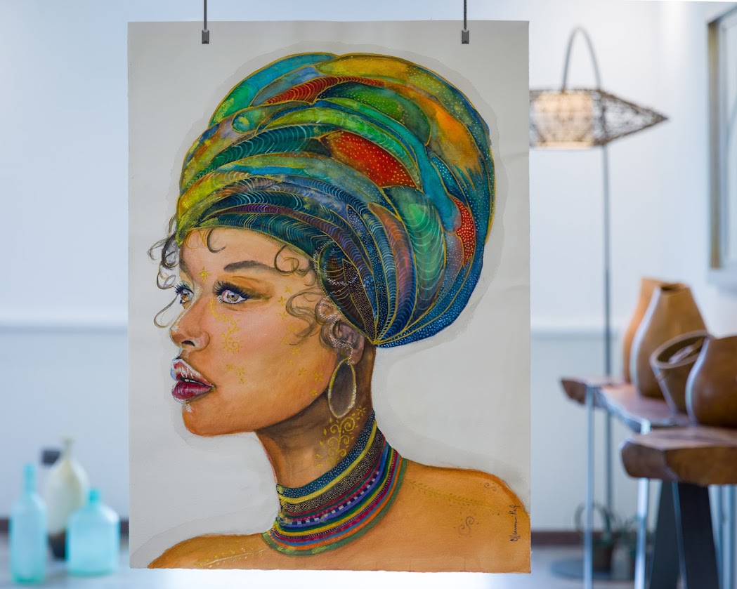 My work explores the internal moment when a woman regains herself—her clarity, her path, her pulse. Some portraits come from real women; others arrive like revelations, appearing on cotton paper as if they had been waiting for me. My role is to let them speak.