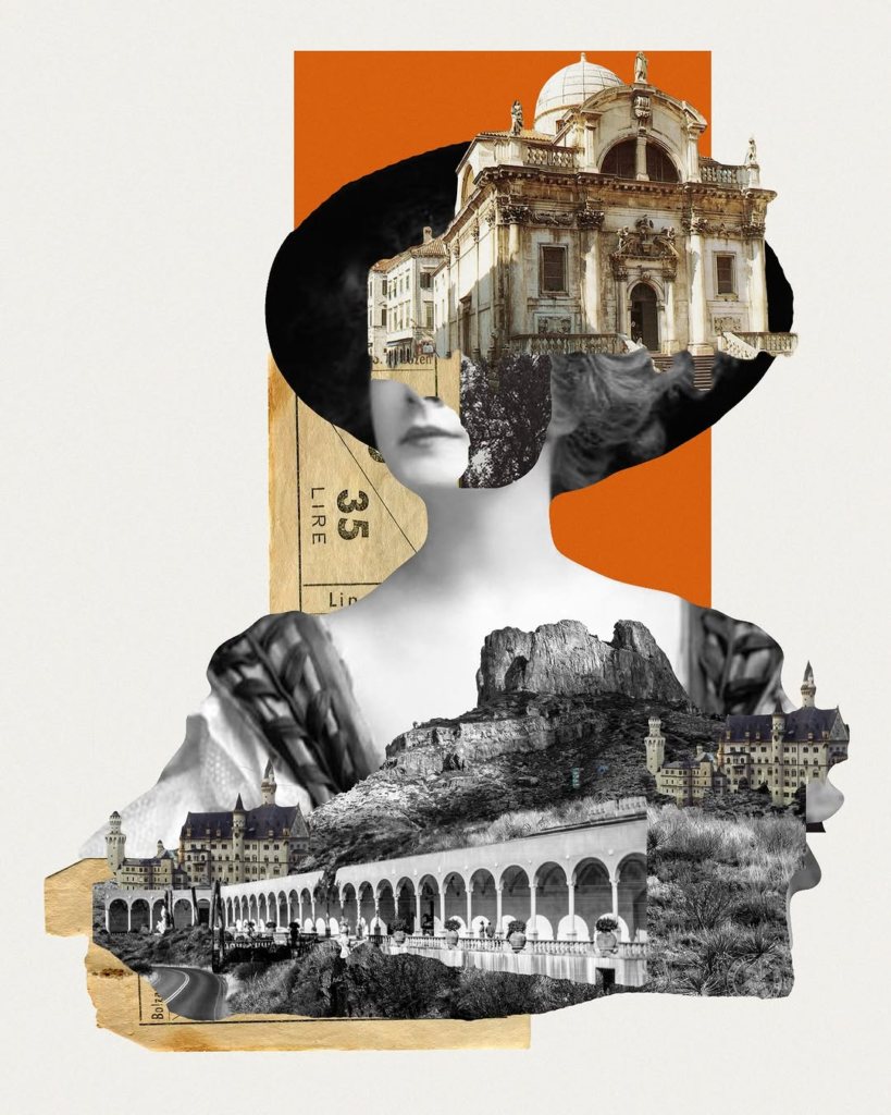 Plácida V. is the kind of collage artist whose work feels like a visual conversation more than a finished product. She describes herself simply as an architect who fell in love with collage and that blend of structural thinking and creative play shows up in everything she makes. On her page, vintage images, cut fragments, and unexpected pairings come together in ways that feel both familiar and slightly surreal. What catches your eye in Plácida’s pieces is her instinct for rhythm and movement. Her collages aren’t just assembled images; they feel like scenes stitched together from memory and impulse. Often there’s a vintage or retro flavour, where classic forms and modern gestures meet in a way that makes you do a double-take, like you’ve seen it before but don’t quite know where. Her approach doesn’t feel calculated so much as being alive. Elements overlap and blend, shadows sit beside bold cutouts, and textures seem to nod to different eras or visual spaces at once. There’s a subtle tension between the old and the new, the recognizable and the strange, that keeps you looking longer than you expected.