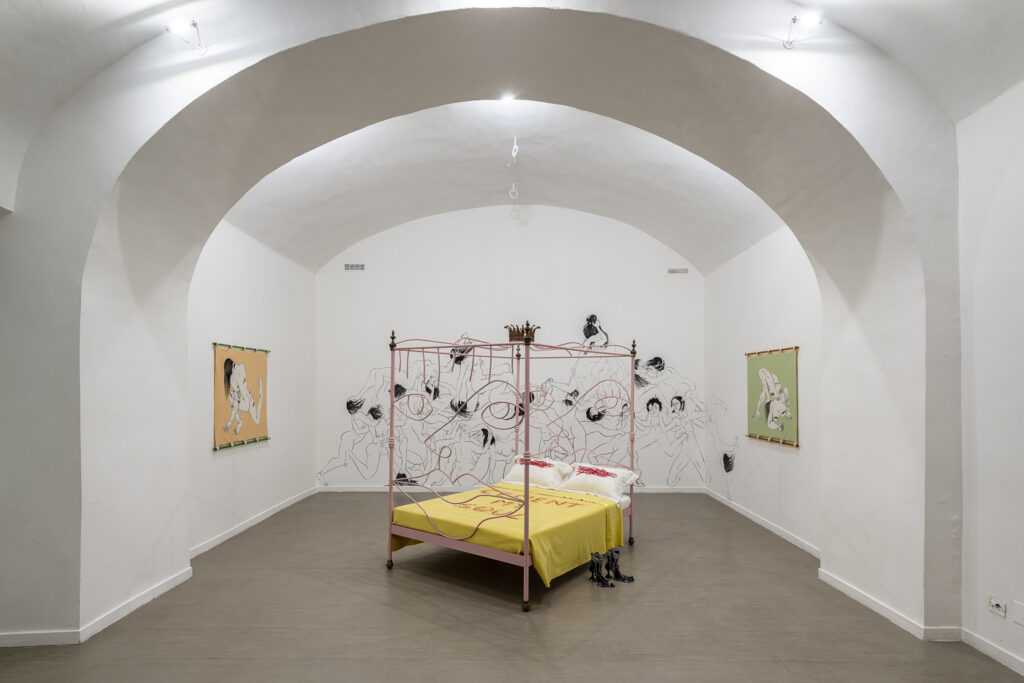 The word “curate” means “to look after items in a collection or exhibition” but I prefer to extend the meaning of that word to include taking care of the artists themselves. My modus operandi as a curator, collector, patron and residency provider is to support the predominantly early career female and queer artists in my network throughout their careers, not just when I am including their work in an exhibition or choosing them to take part in the GIRLPOWER Residency I co-founded in 2023. This support can take many forms from catch-up studio visits to platforming them on my social media channels or even inviting an artist to a meal in my home.