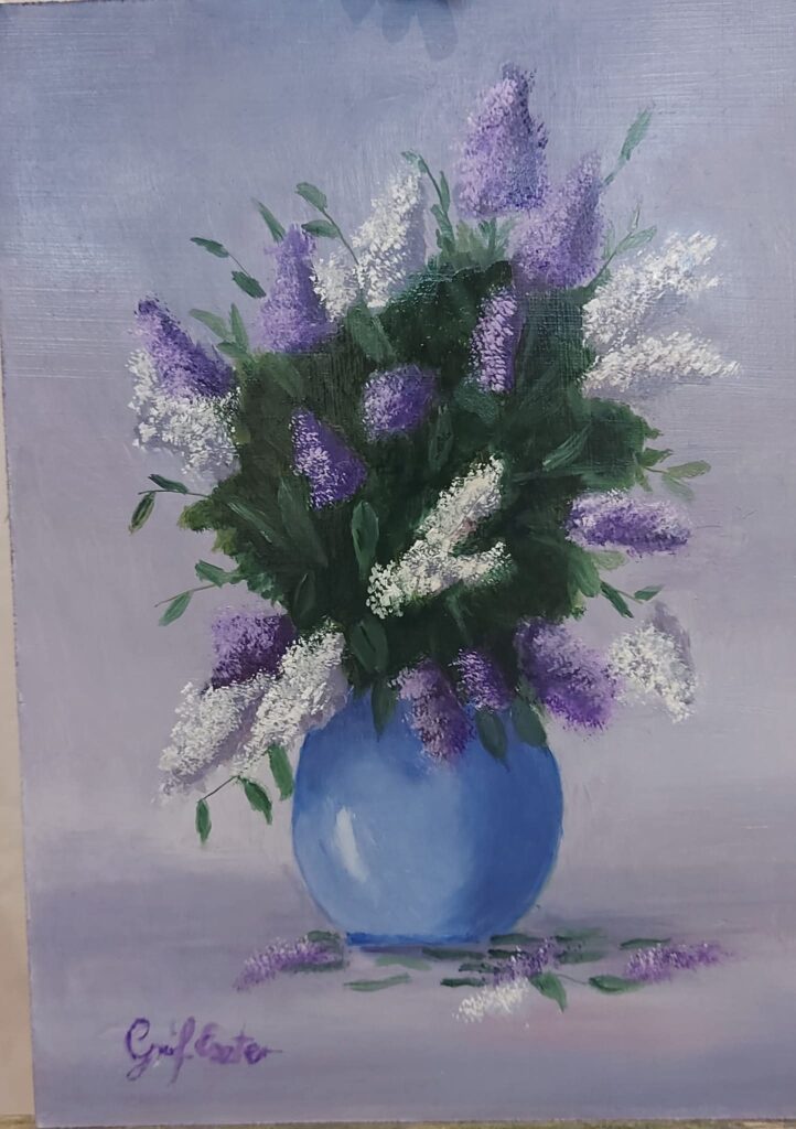 She does not overcrowd her compositions. She knows where to stop. She knows when the painting is breathing on its own and does not need another stroke.