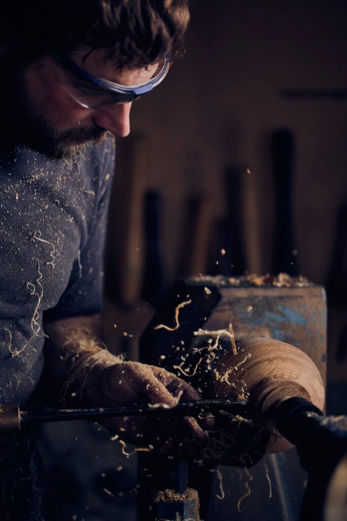 Then they came back to the UK. No real plan. Just a pull toward something different. Barnaby started getting into basic woodcraft, tried a friend’s lathe one afternoon, and something shifted permanently. They bought their own lathe. Set up in a single garage. Started figuring it out the slow, physical, unpredictable way that wood demands.