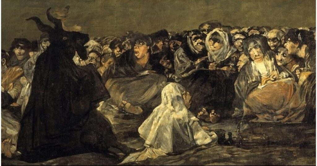 If Saturn Devouring His Son feels like a moment of private madness, Witches’ Sabbath expands that unease into something collective.