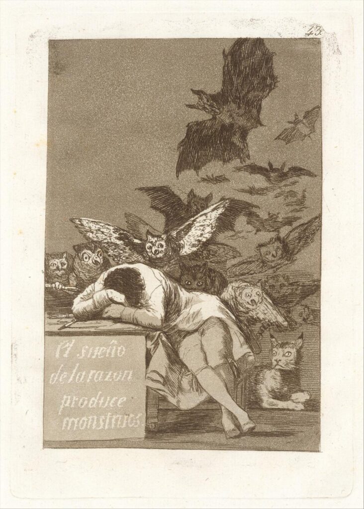 One image in particular, The Sleep of Reason Produces Monsters, becomes almost prophetic. It suggests that when reason fades, something darker inevitably takes its place.