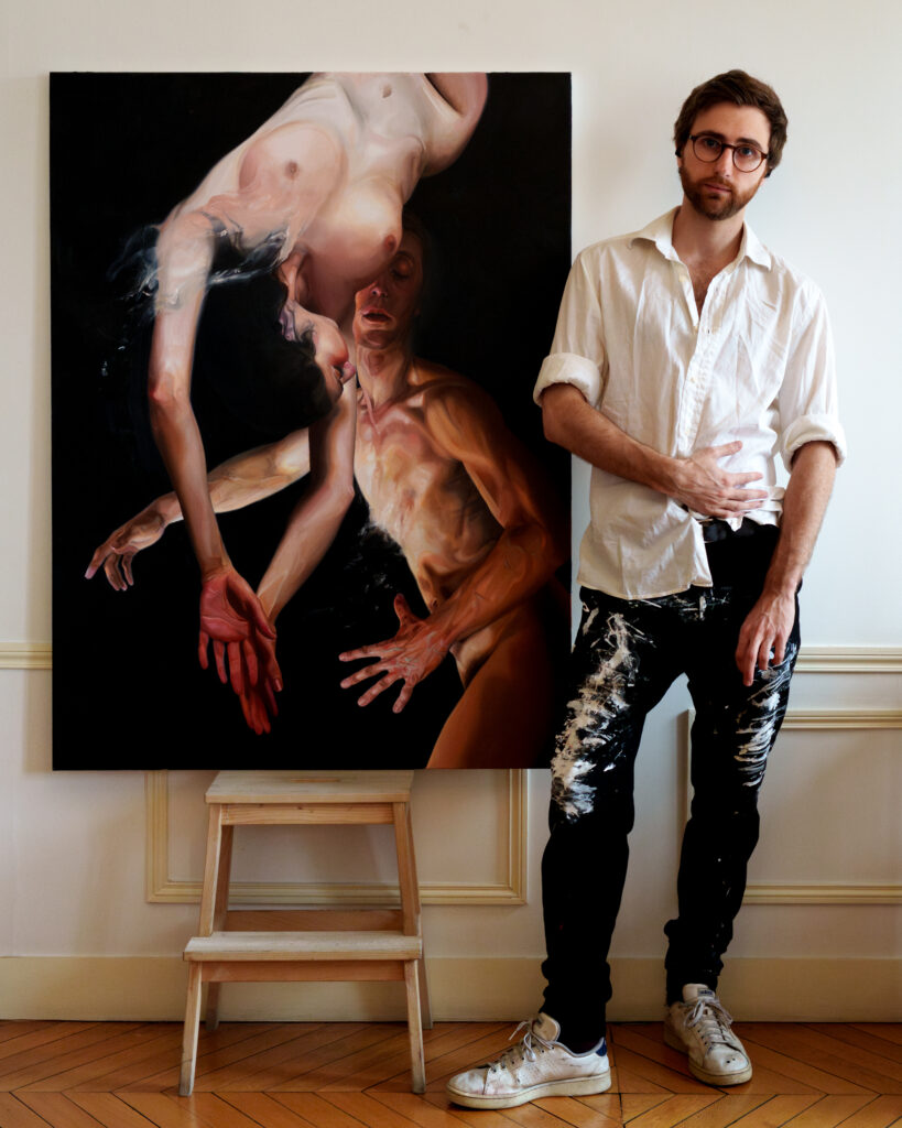 I believe I discovered I was an artist through destruction, before I ever truly created anything. My real entry point into painting wasn’t a classroom in Paris, where I grew up, but the streets. At 15, I found graffiti, and that experience was fundamental because of its immediacy and raw expression. That visceral quality is something I constantly try to carry with me in the studio. My existentialist subjects and the sometimes violent, abstract marks in my work are a direct echo of those beginnings – an attempt to capture a feeling through a raw, unfiltered mark.