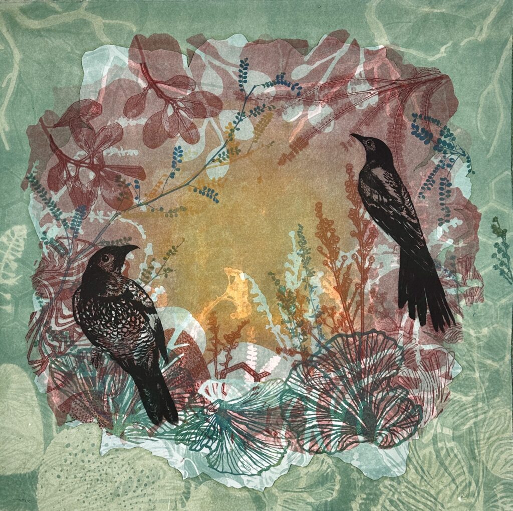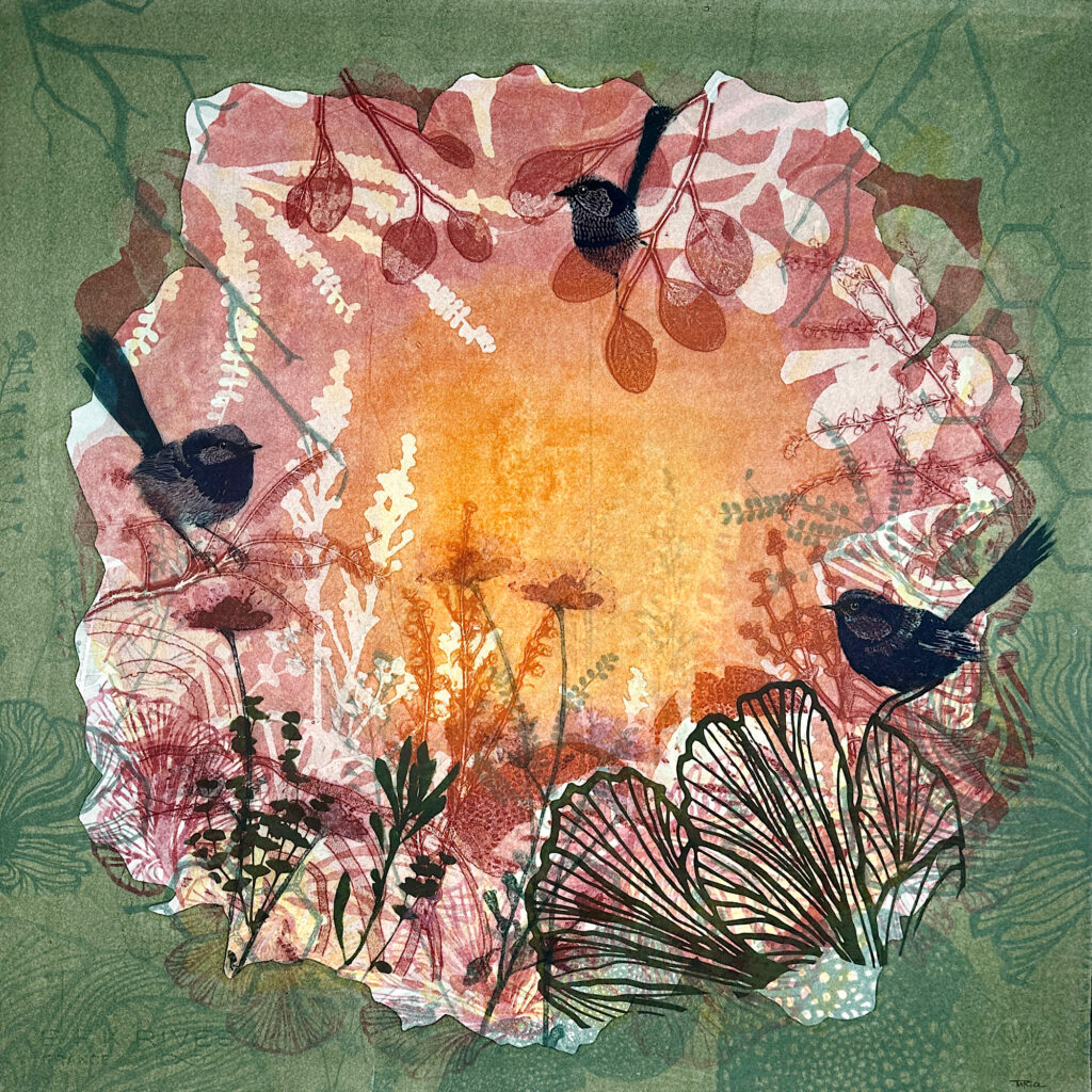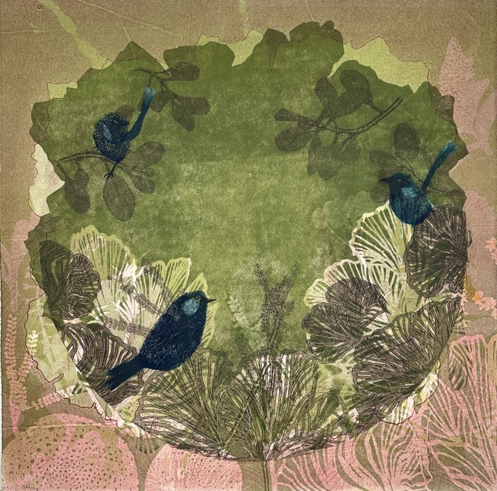In my earlier years, my art was definitely more exploratory, and I was in that learning phase. Having family meant I had to prioritise and my art came second. But over time, my practice has now a much clearer sense of intention. Printmaking became central; it’s the language through which I express how I see the world. Today, my mindset is more focused and grounded. Being represented by Queenscliff Gallery has brought greater clarity and accountability. It has encouraged consistency, care, and steady growth in my studio life. I now see the studio as a place to build something lasting. A body of work that is more considered and shaped slowly over time.
