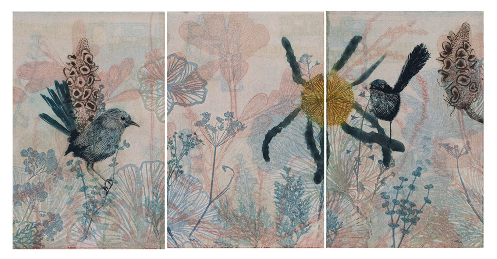 Q6. Your subjects range from wrens and pardalotes to banksias and garden specimens. When drawing from memory and observation, how do you balance what you felt with what you see in your prints?