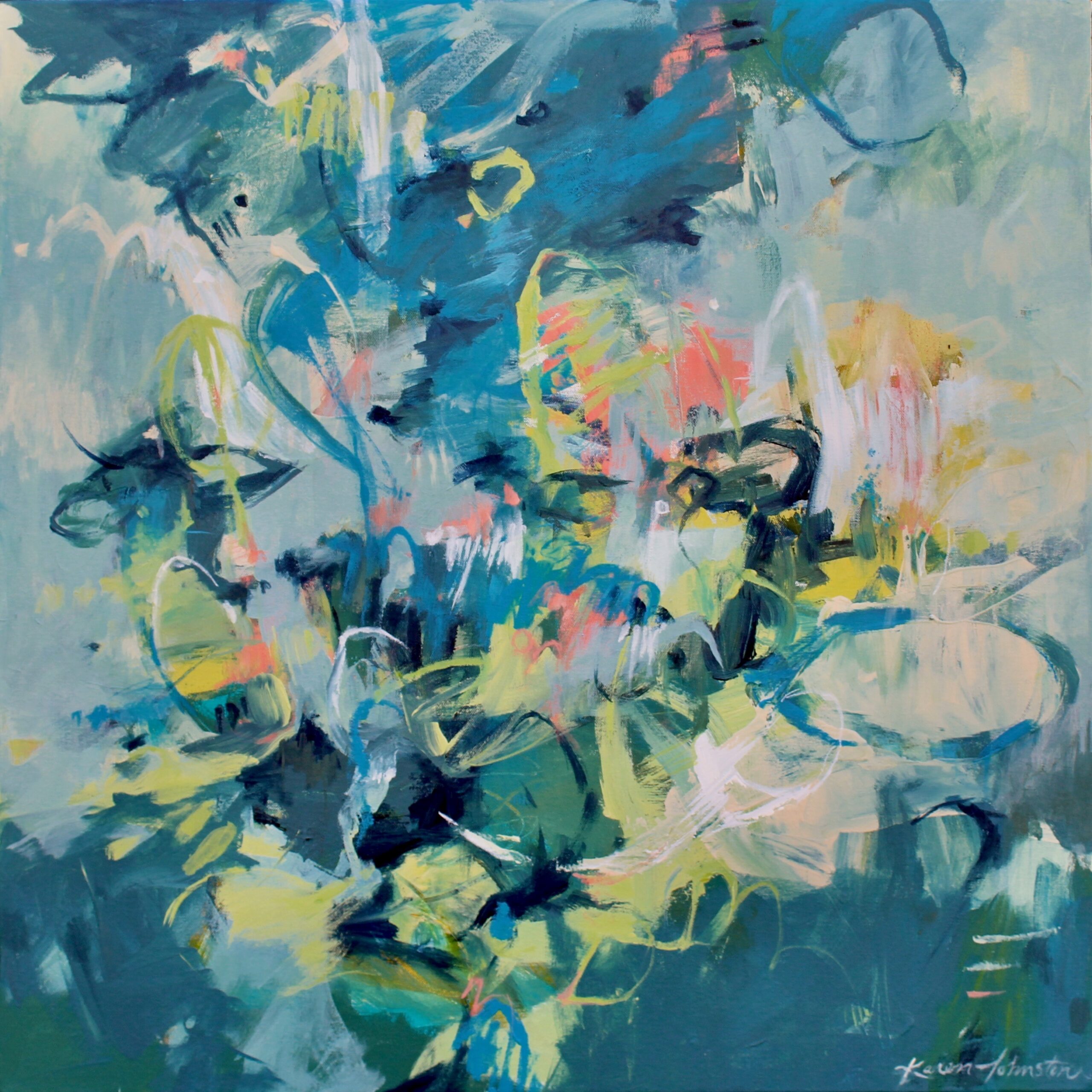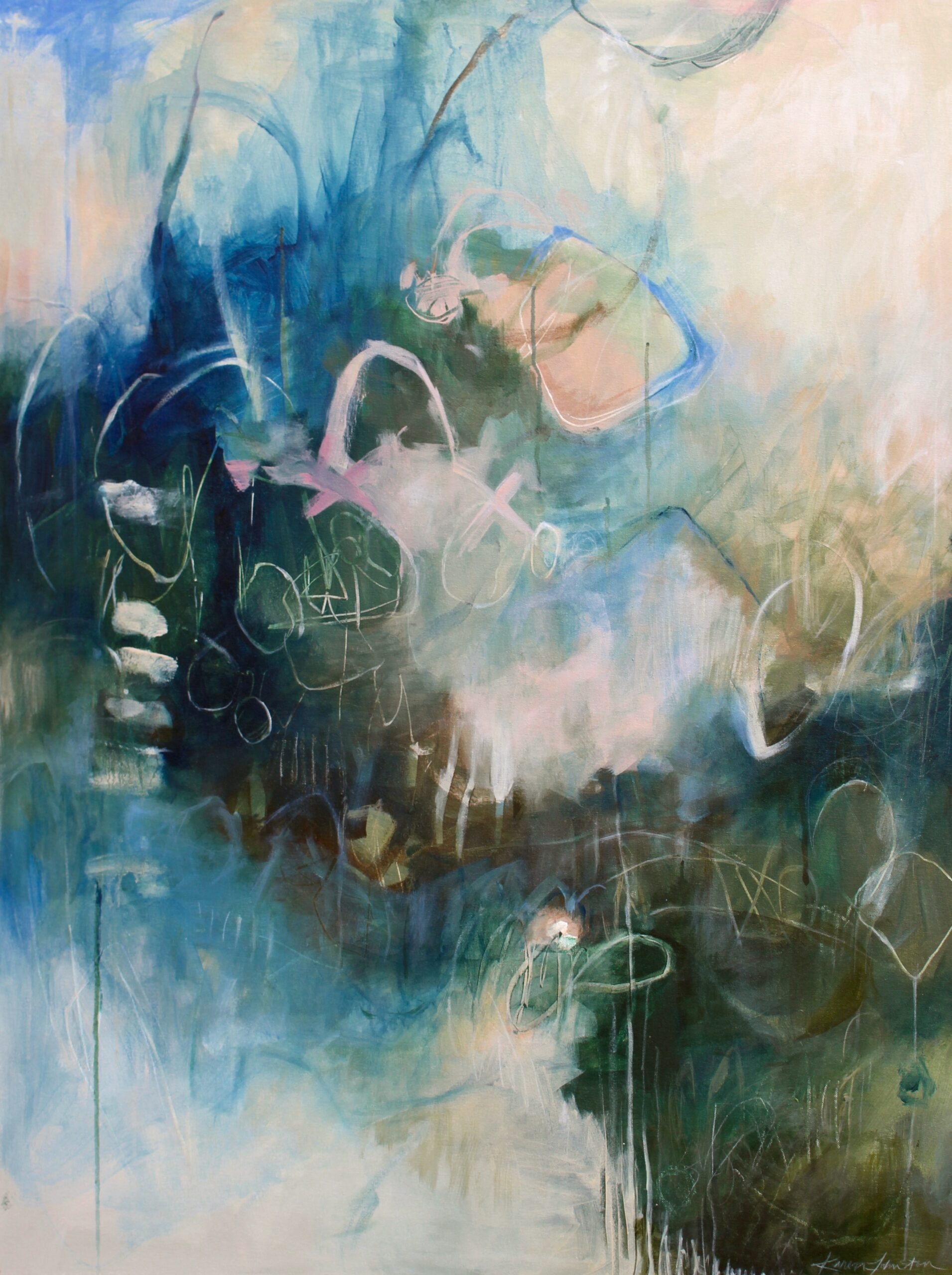 Nashville-based artist Karen Johnston tucks wisps of emotion into painted layers of nature and life. Her process produces images that evoke a sense of familiarity, yet spark the imagination to find a personal meaning. Originally from Cincinnati, OH, she earned a BFA in Illustration from the Columbus College of Art and Design. Over time, her art evolved from realism to abstraction as she continued to refine her innermost artistic vision. An ultimate focus on abstract expressionism granted her the freedom to combine emotion, knowledge and energy with her own set of experiences and observations.