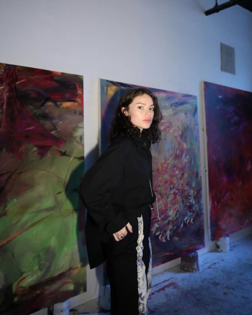 A major turning point came during the pandemic, when she moved from set design to full-time painting. What emerged wasn’t just a change in medium it was an unraveling, a release of years of creative tension into a daily practice built on discipline, curiosity, and discovery. Painting every day became a way to grow, to experiment, and to meet the discomfort that often signals real artistic progress.