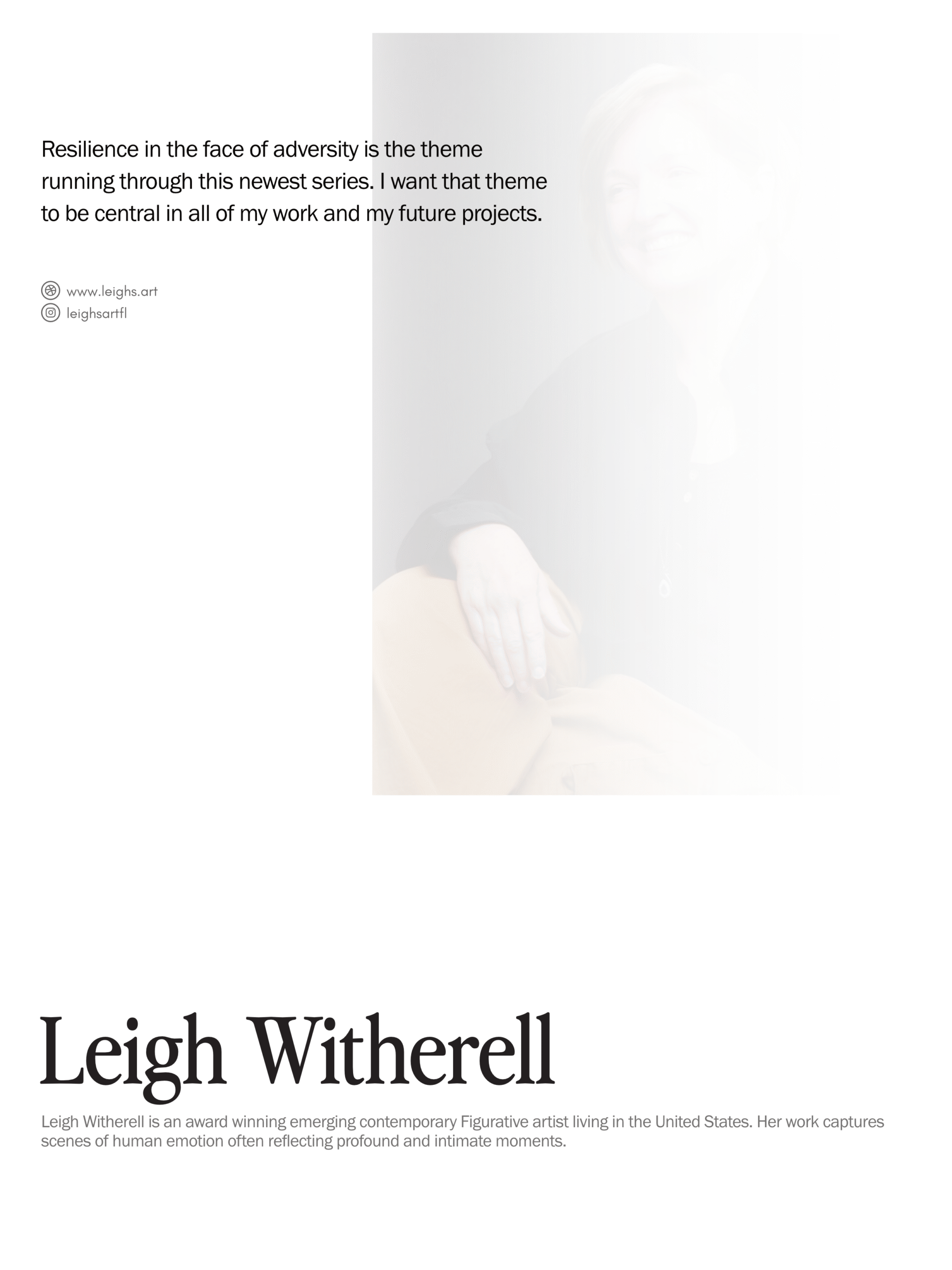 Leigh Witherell’s work gives form to the moments we often keep to ourselves—the ones filled with quiet emotion, loss, and human connection. Through her paintings, she helps us pause and notice what happens when no one is watching. Her journey shows how grief can shift perspective, how painting can create space for honesty, and how art can open the door to conversations we might not have otherwise. We’ve learned that her work doesn’t just tell her story—it makes room for others to see their stories too.