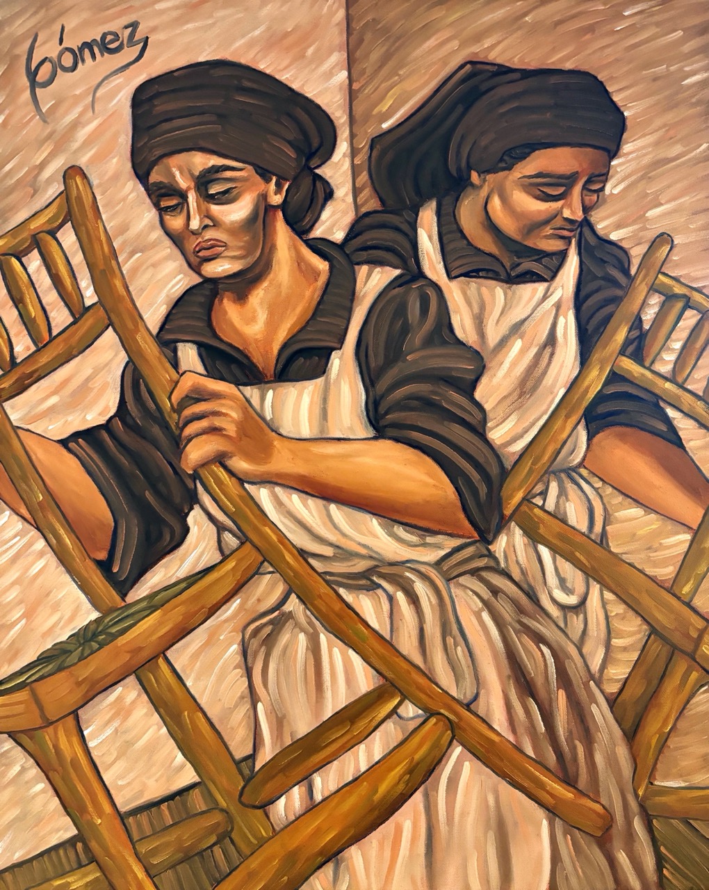 Susana Gomez Laverde’s work shows us how theatre and painting can intertwine to capture the constant movement of human emotions. Her canvases are like tableaus, holding a moment still while hinting at the stories and tensions alive beneath the surface.