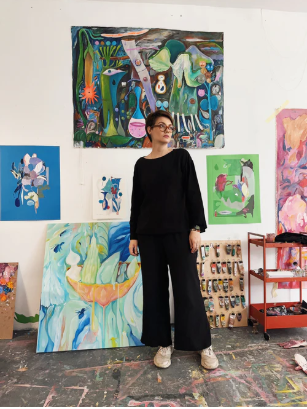 These shows have drawn attention for their deeply immersive atmospheres and emotional depth, often leading viewers to slow down and feel rather than simply observe. Her solo show “What Grows Between Us” received widespread praise for its lush, layered canvases exploring emotional and natural symbiosis.