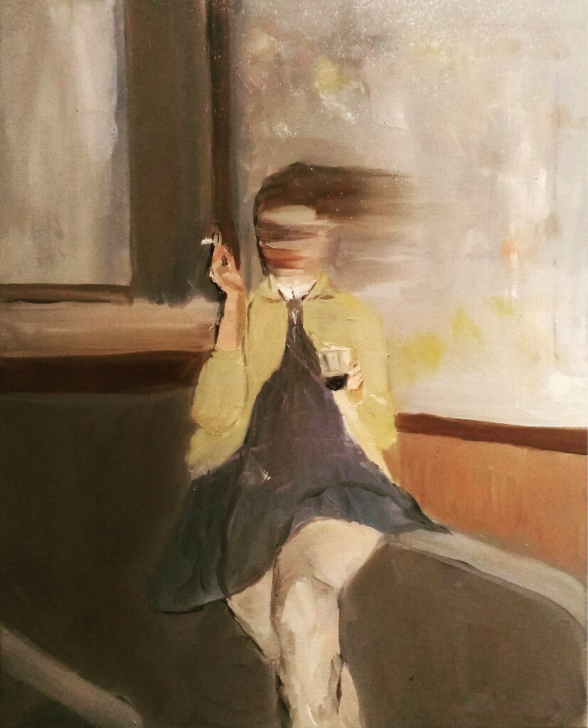 In your painting “Dimitto” (2022), the atmosphere feels both fragile and powerful. Can you share the story of how that piece came to life, and what it means to you personally?