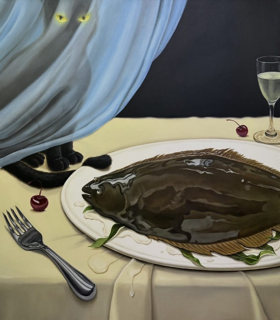 At first, I was drawn to these elements quite unconsciously. I found myself repeatedly interested in things like cats, the moon, fish, and flowers. These were things I naturally liked and felt inspired by. Over time, they became recurring motifs in my work, and now I feel they help me build my own visual language.