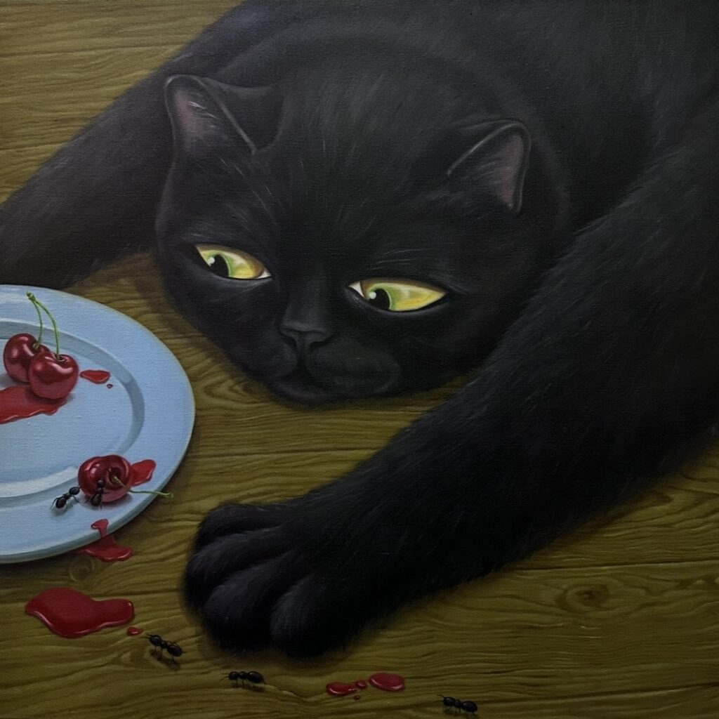 This Korean artist paints black cats in the flattest, strangest colors you’ll ever see︱Minyoung Kim