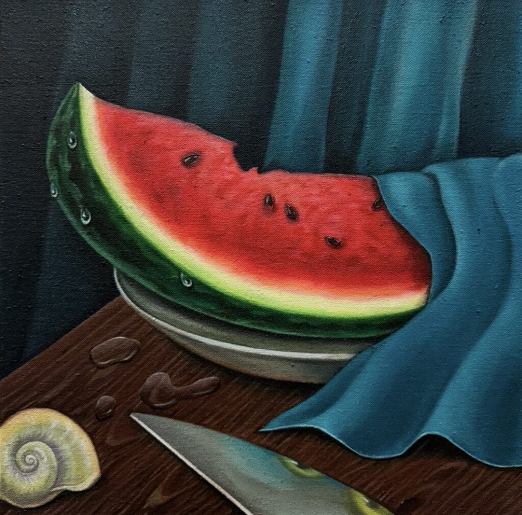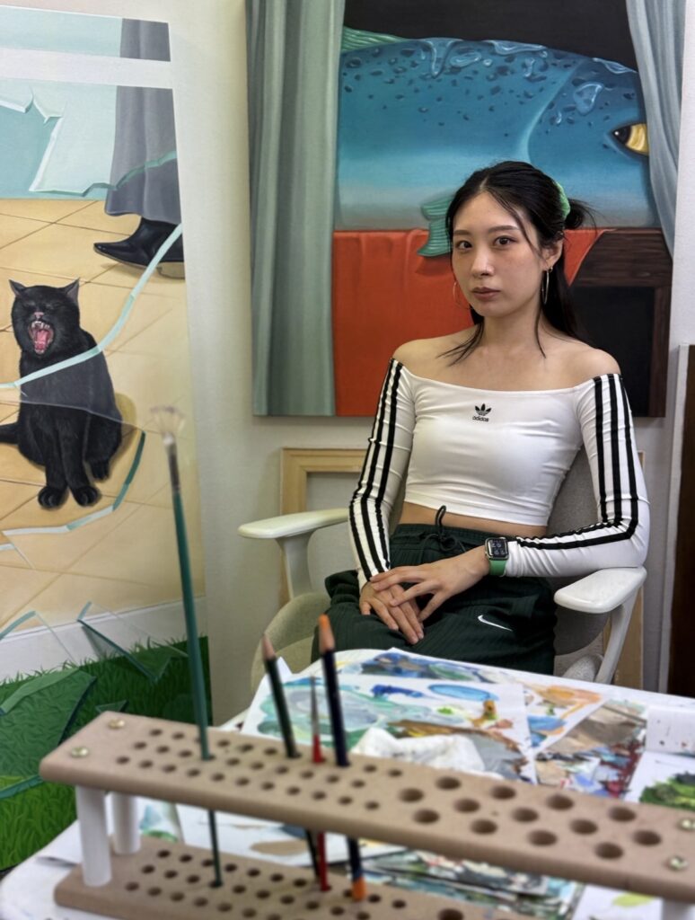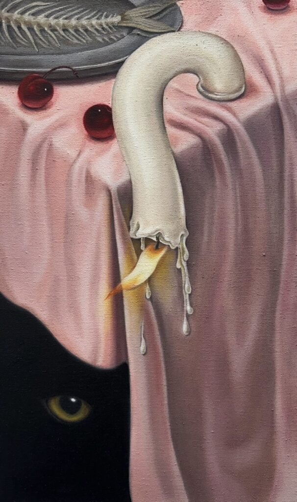 Because Minyoung is not reaching for strangeness as an aesthetic. She is painting the world exactly as she experiences it full of small ironic moments, subtle shifts in reality, things that look one way at first glance and reveal something entirely different the longer you look.
