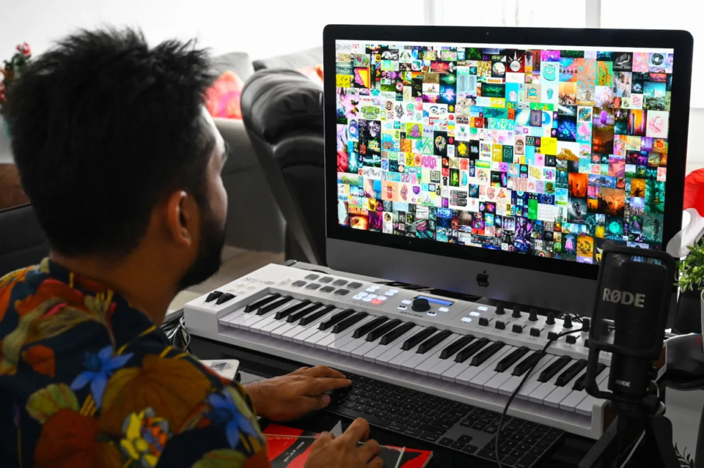What made the sale so staggering wasn’t just the price, but the nature of the work itself. Created by digital artist Mike Winkelmann, known as Beeple, Everydays exists purely as a digital file, a vast mosaic of 5,000 individual images produced daily over more than thirteen years. Rather than a physical object, it was sold as an NFT (non-fungible token), a blockchain-based certificate that verifies ownership of a unique digital asset.