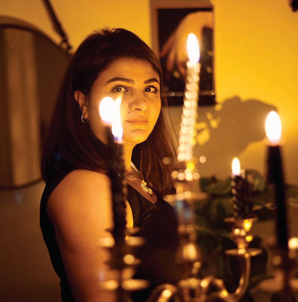 Her work sits at the intersection of painting, handcrafted collage, and material embellishment, exploring womanhood, cultural memory, adornment, and the emotional textures of inheritance. She has exhibited internationally at The Other Art Fair in Los Angeles and London, presented work at Woman Made Gallery in Chicago, and participated in curated exhibitions and art fairs across the UK, Europe, and India.