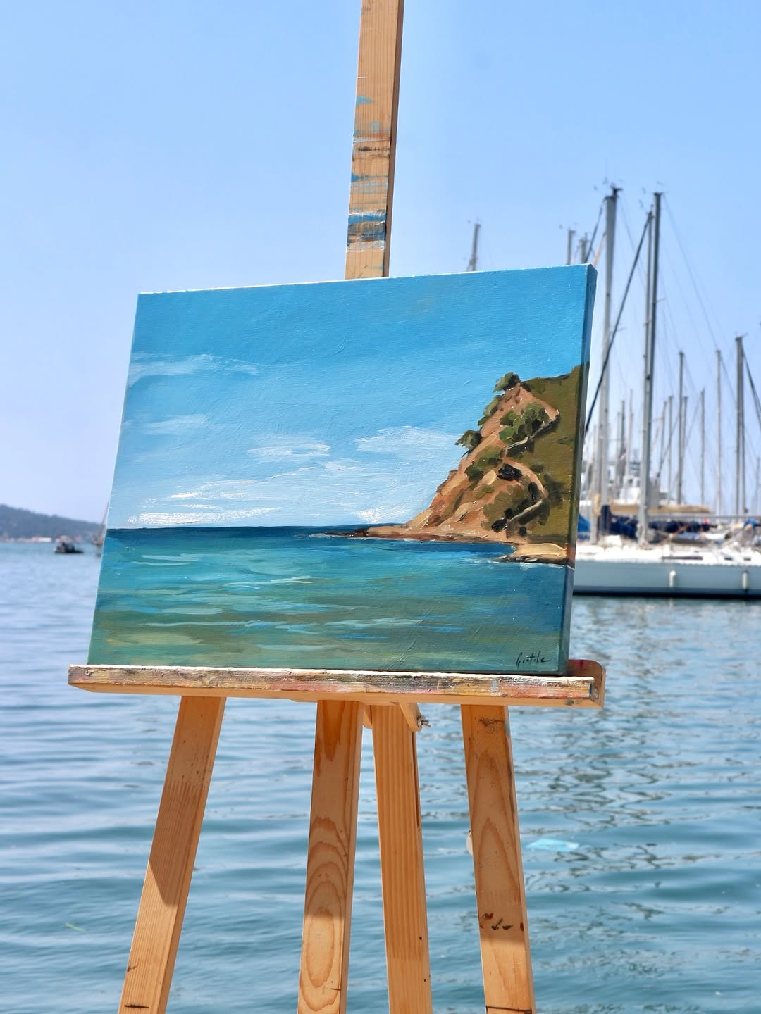 There is a gentleness to her practice that makes even simple scenes feel meaningful. A reflection on the water becomes a breath. A boat resting in the harbor becomes a moment of peace. A wash of warm light becomes something you want to hold onto. Through her work, Éléonore captures the power of small, quiet moments and how a single glimmer on the sea can stir memory, comfort, and presence. Éléonore de Gentile’s art transforms ordinary life into something extraordinary. Mediterranean vistas, humble interiors, and carefully arranged still lifes become studies of light, presence, and emotion. Each painting carries a sense of calm, intimacy, and poetic resonance, revealing the beauty that can be found in observation, subtlety, and care. In her hands, the Mediterranean is not just a landscape; it is a feeling a soft, luminous reminder of beauty, calm, and the simple grace of light moving through the day.