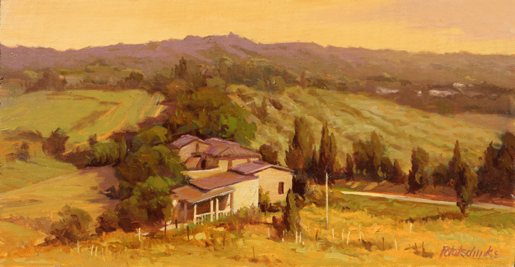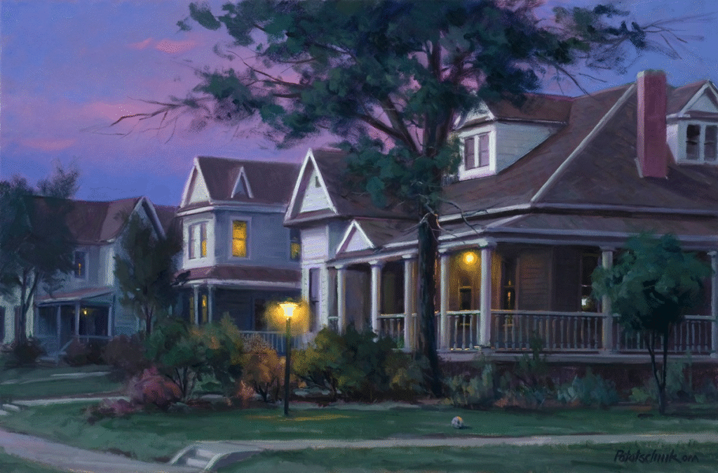 His technique reflects deep care and patience. Often he starts with plein‑air sketches or photographs, building a “memory bank” of light, colour, and atmosphere. In the studio, he uses a limited palette to layer oils in careful underpaintings and glazes, creating depth, mood, and light that feels lived-in and timeless. What makes John’s work deeply human is the emotional resonance behind every scene. A quiet country road, an old farm house, a group of trees at dusk through his brush, these become more than a place. They become memory, yearning, and a longing for simplicity and connection. As he puts it, his paintings are not flashy or dramatic, but honest reflections of life “as he sees it.” Over decades, his dedication and skill earned him significant recognition: he is a Living Master with the Art Renewal Center, a signature member of the Oil Painters of America, and a Master Signature Emeritus member of the Outdoor Painters Society. In John Pototschnik’s paintings, quiet landscapes and humble townscapes become profound meditations on memory, place, and the beauty of everyday life. His work quietly reminds us that dignity, peace, and belonging aren’t found in grandeur but in simplicity, authenticity, and the gentle unfolding of time.