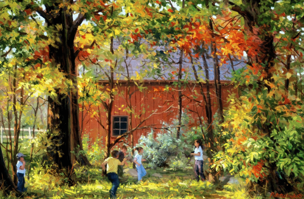 John Pototschnik is a realist painter whose work quietly honors memory, landscape, and simple pleasures. His oils make familiar sights feel timeless and full of presence. Raised in Kansas after being born in Cornwall, England, John discovered later in life that painting could be his path. He spent years as a commercial illustrator before turning full-time to fine art in the early 1980s. His paintings often reflect an “America we all love” — rural towns, open fields, quiet barns, small-town streets, and landscapes suffused with calm and nostalgia. He describes his mission simply: to depict life “in a naturalistic way free of frills and bravado,” showing dignity and value in ordinary subjects Pototschnik’s beginnings were humble but varied after studying advertising design at Wichita State University and later illustration and design at ArtCenter College of Design, he spent years working as a commercial illustrator. In 1982, he moved into fine art full‑time, embracing oil painting as his medium of choice.