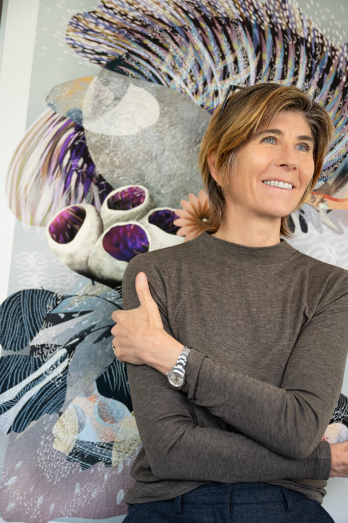 There is a part of her process that really caught our attention. She works digitally but she is very clear that the work is not real to her until she can hold it. Until it has been printed and she can stand in front of it and feel its scale and texture with her body.