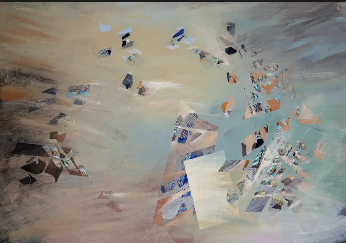 She does not plan where the energy will live in the composition. She does not decide where movement begins or ends. She listens for it. And the painting becomes whatever that listening produces.
